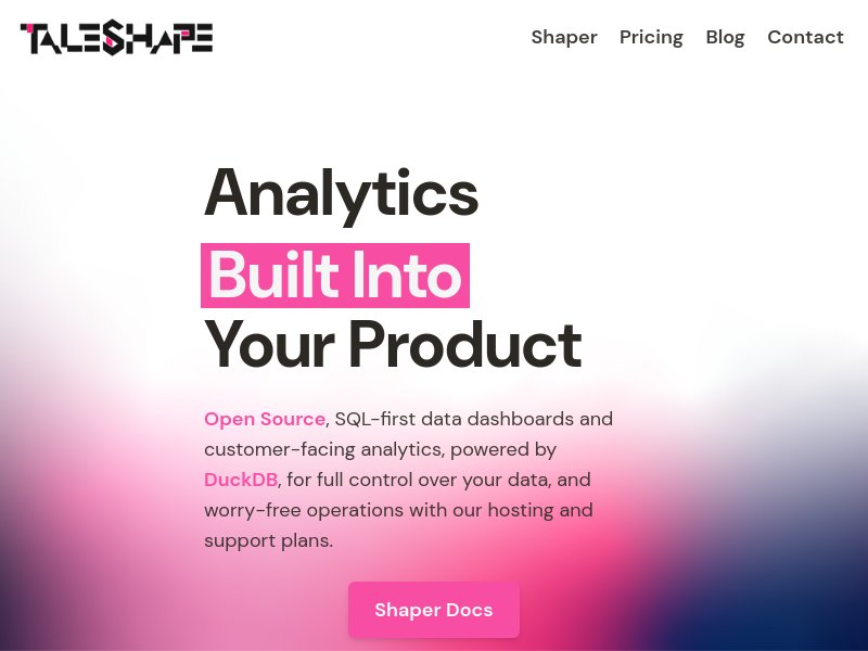 Open-source, SQL-first data dashboards and customer-facing analytics, powered by DuckDB, for full control over your data, and worry-free operations with our hosting and support plans.
